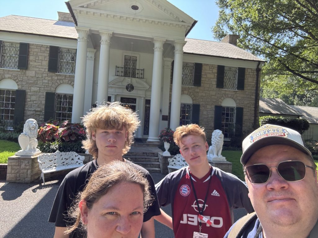 Jeg har, så længe jeg kan huske tilbage (eller næsten), været fan af Elvis, og siden vi begyndte at planlægge roadtrips, har jeg prøvet at se, om Graceland kunne passe ind. Det lykkedes så i år. Villads har drømt om at se Graceland, siden han på vores road trip i 2022 så filmen Elvis med Austin Butler og Tom Hanks. Filmen gjorde ham med det samme til en stor Elvis-fan, og vi har hørt og set rigtig meget Elvis siden. Den film ændrede en del for Villads, ikke kun begejstringen for Elvis, men i forlængelse af den også en stor kærlighed til musik generelt. Fx indførte han, at han skulle høre et nyt album hver dag, så han kunne høre en masse forskellig musik.