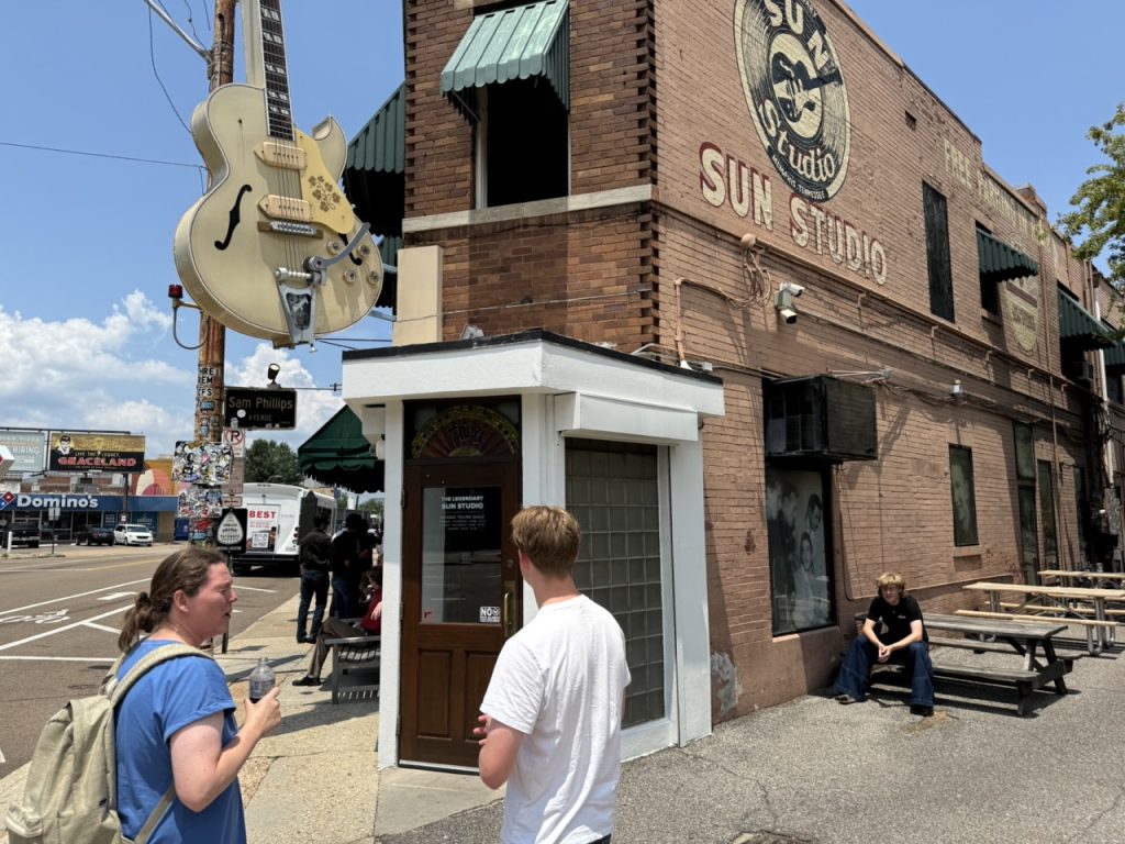 Herefter besøgte vi Sun Studio, som er det studie, hvor Elvis lavede sine første plader. Men det var også stedet, hvor mange andre stjerner har spillet, fx B.B. King og Johnny Cash. Det var en virkelig god rundvisning. Stedet var småt, men ham, der viste os rundt, havde en virkelig god energi, og hans kærlighed til musikken var tydelig. Vi talte om, hvordan man kunne mærke storheden i det lille lokale.