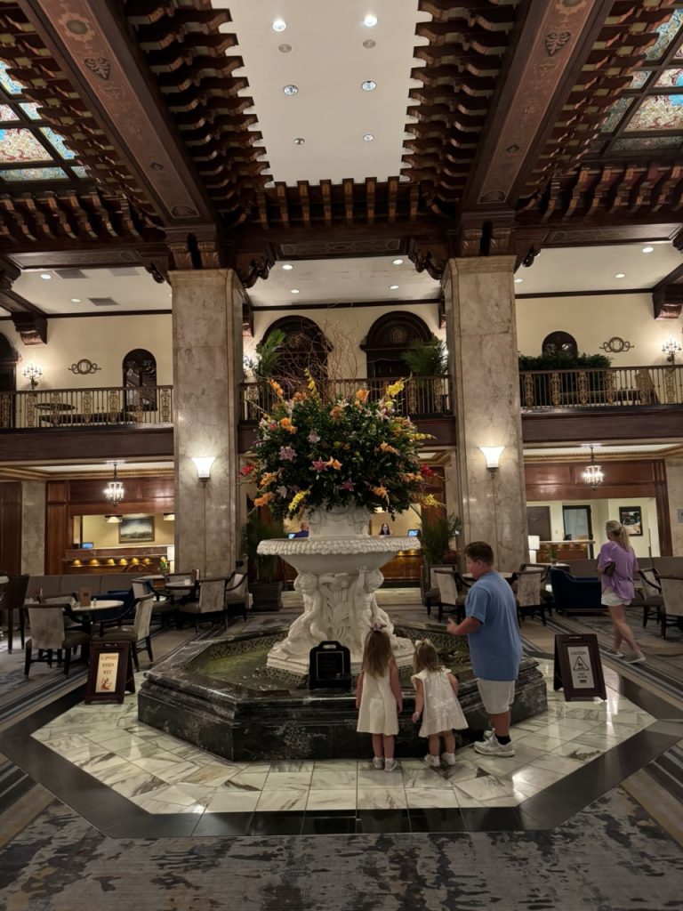 Så var det tid til frokost. Vi skulle teste Memphis BBQ, og det gjorde vi hos Charlie Vergos’ Rendezvous. Selve lokalet var sjovt, og stemningen var god. Der var lidt delte meninger om kvaliteten af maden, men jeg fik en god portion ribs, som jeg syntes smagte godt. På vej over til bilen gik vi ind i Peabody Hotel, som er et hotel kendt for at have levende ænder i deres springvand midt i hotellet. Det var et flot hotel, og vi så de berømte ænder.